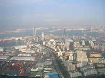 手前には南港のしらなみ団地、そして先にはWTCのタワーが見えています。