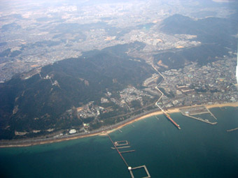 神戸の垂水区のあたり。ちょっとは視程が良い感じですかね。 |