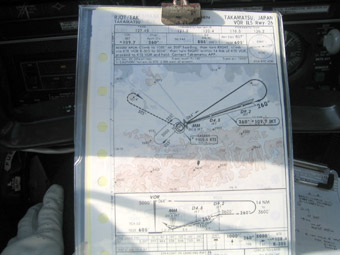 この先からは高松の進入管制官がレーダーで誘導、計器進入のILSアプローチをしてきます。事前にジェペセンのアプローチチャートをおさらいしておきます。 |