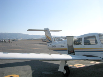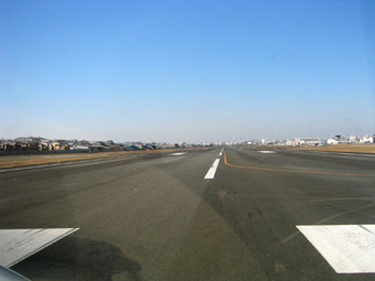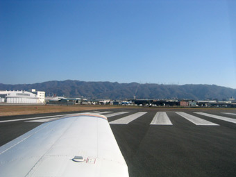 管制塔の離陸許可と同時にスロットルをゆっくりと押していきます。ターボエンジンの力強い馬力が体に伝わり、機体もゆっくりと滑走路を滑り出します。 |