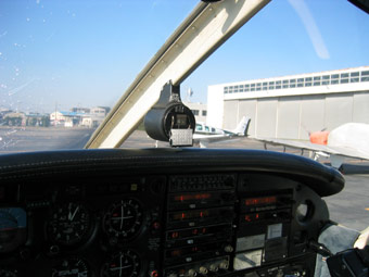 離陸前のプリ・テイクオフ・チェックも終了。八尾の管制塔からは滑走路に進入して一旦停止の指示がきました。滑走路の端でユータン、機首を離陸方向の西に向けましょう。