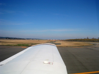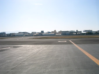八尾空港の滑走路は基本的に一番使用頻度の多いRWY27のようです。ゆっくりとタキシングを開始しましょう。 |