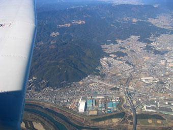 生駒の山を左に見ながら右に機首を向けていきます。 |