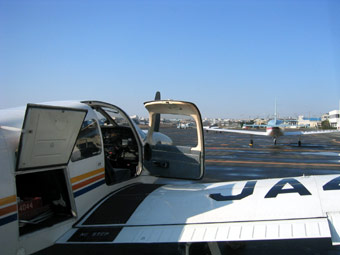 駐機場から誘導路に入る時は、必ず他の飛行機がいないかを目視で確認しておきましょう。地上とはいえ油断は禁物です。 |
