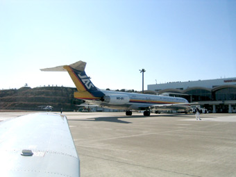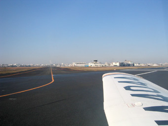 日本エアシステムのMD-81が東京に向けて出発のようです。我々がまずは駐機場までタキシングですけどね。 |