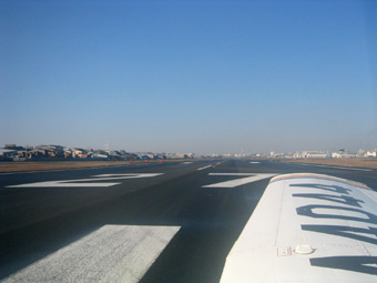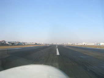 スロットルをフルパワー。エンジン関係が正常であることを確認しながら離陸滑走の開始です。 |
