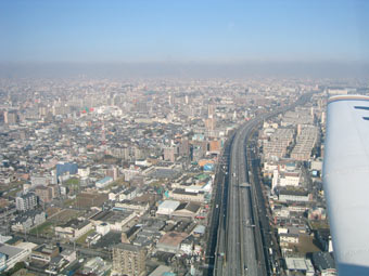 八尾空港の周りは住宅が多いですね。 |