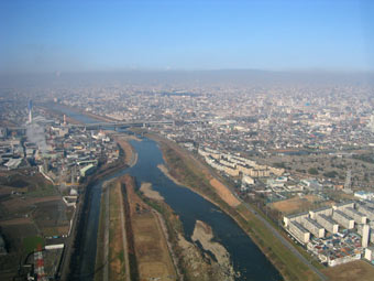 左に旋回。大和川を横切ります。 |
