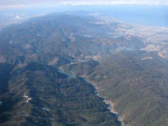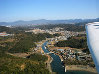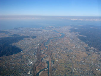 和歌山県の紀ノ川を横断。河口のあたりが和歌山市です。 |