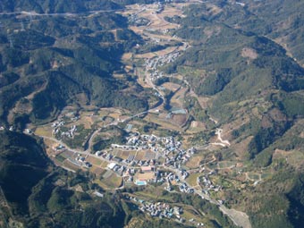名前は分かりませんが、山の中にある小さな村。のどかですね。 |