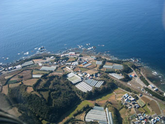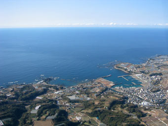 太平洋です。小さな港がありますね。