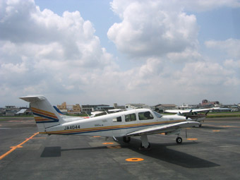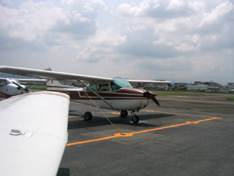 先週は格納庫に入っていた機体も今日は暑い太陽の