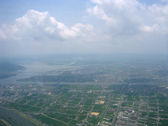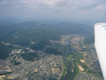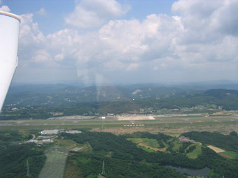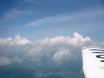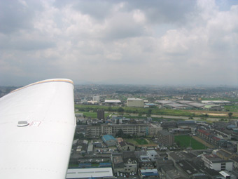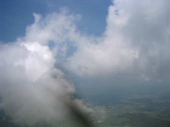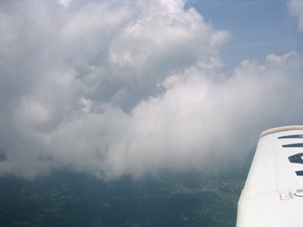 さて、さっきの手前の雲を過ぎて、今度は軽く右に旋回。 |