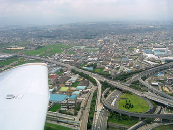 手前に少し見えているのは阪神高速松原線ですね。 |