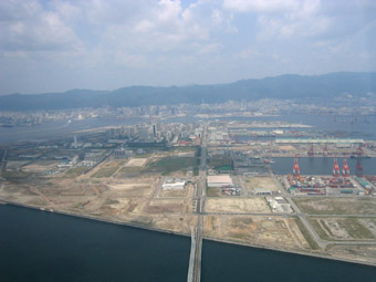 手前に見えているのは空港と神戸を結ぶ連絡橋です。
