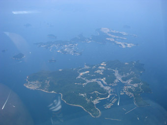 瀬戸内海上空です。自動操縦のスイッチをON!