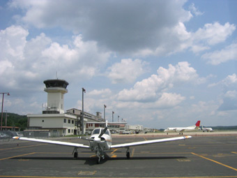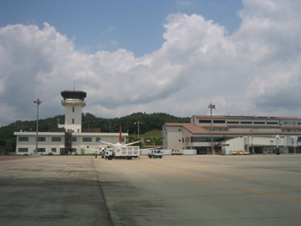 管制塔の前には日本エアコミューターのプロペラ旅客機が
