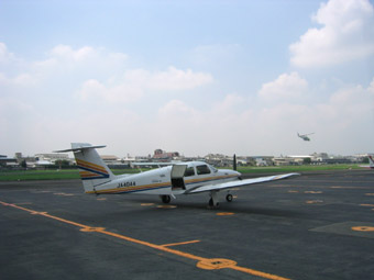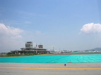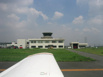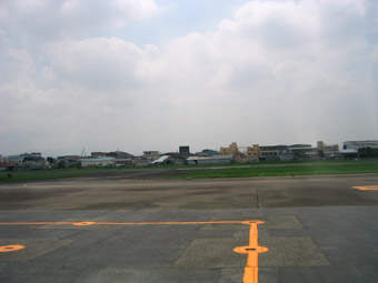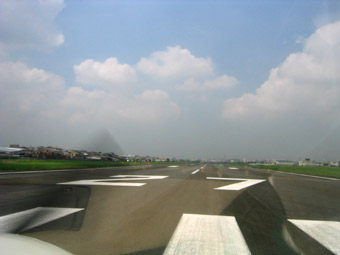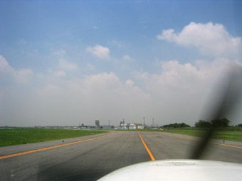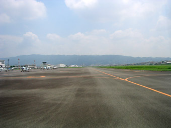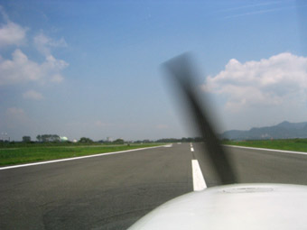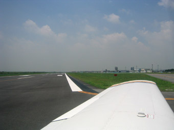 速度が落ちたところで滑走路から誘導路に出ましょう。 |