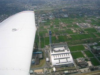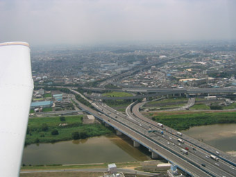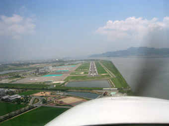笹が瀬川の手前で左旋回、滑走路の直線進入