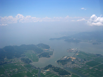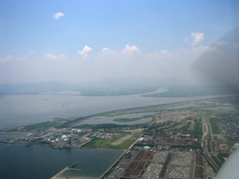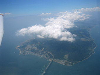 南には関空が、和歌山県の方には積乱雲が出ています。 |