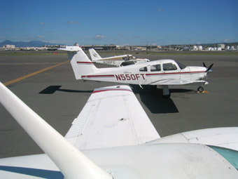 その向こうにもパイパー社製の飛行機が留まっています。 |