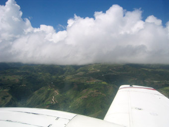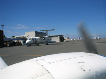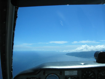 右旋回、出発経路の海岸線沿いを飛行します。 |
