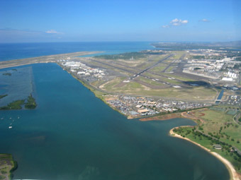 多くの旅客機、隣接しているヒッカム空軍基地の戦闘機