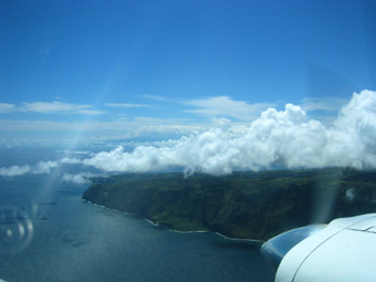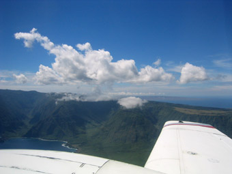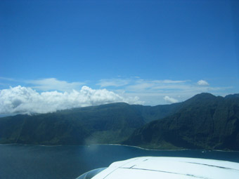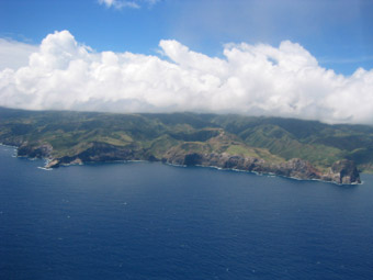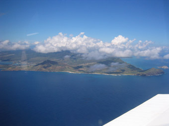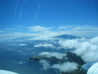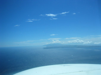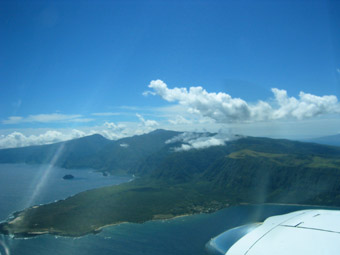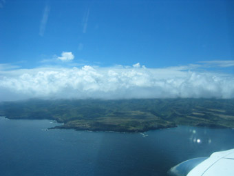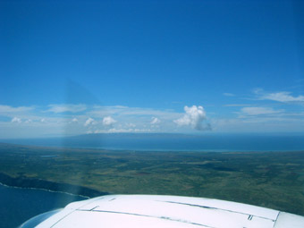 モロカイ島の向こう(南側)にはラナイ島が見えています。 |