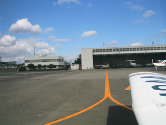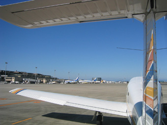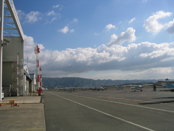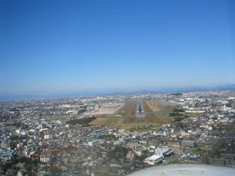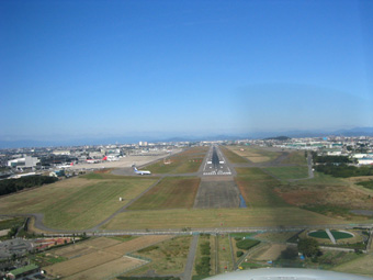 滑走路も見えてきましたし、先行機も着陸しました。 |