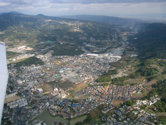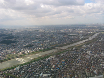 川沿いに飛んで、MD80が過ぎてから左旋回です。 |