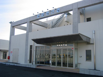 ターミナルビル。まだ入り口の上の「岡南飛行場」の文字