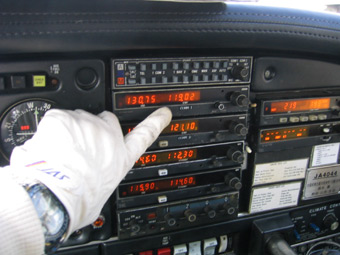 管制官と通信しますから、無線器のスタンバイ