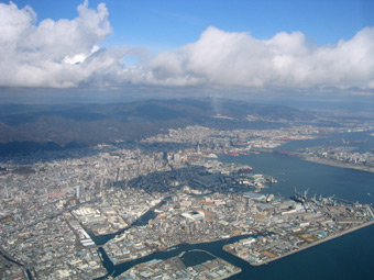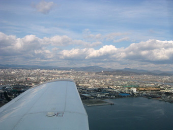 神戸沖です。管制の指示で4,000フィートまで