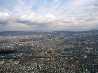 生駒の山の谷間ですね。