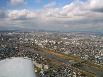 飛んで八尾空港まで降下していきます。