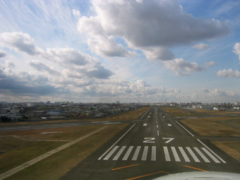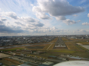 滑走路を左に見ながら、最終進入コースへ旋回を