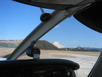 右回りをして離陸の方向に機首を向けましょう。 |