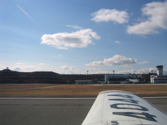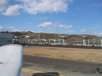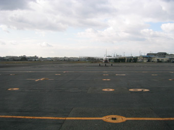 この誘導路を左に曲がって駐機場までタキシングです。 |