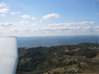 離陸して直ぐの高度では右手の丘に風が影響されて