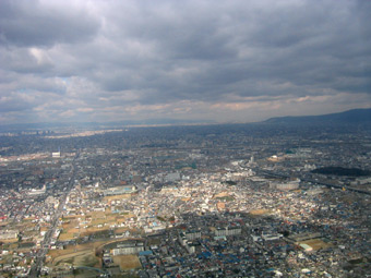 その先には大和川、そして少し先には八尾空港です。 |