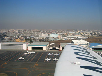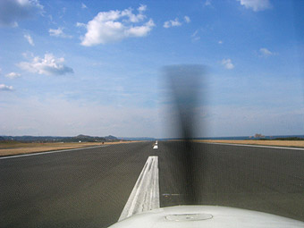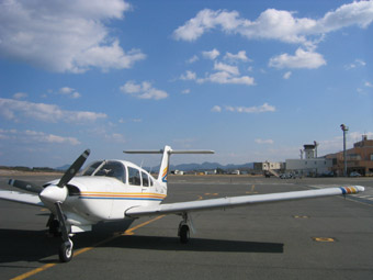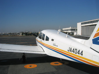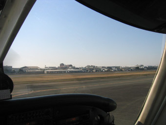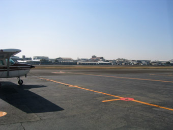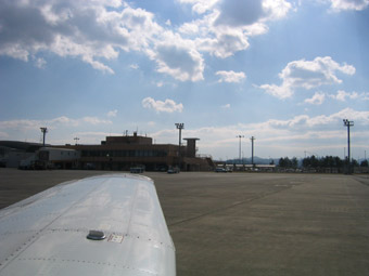 小型機用の駐機場までゆっくりとタキシングです。 |