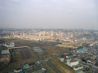 前方に見える山は生駒ですが、雲の量は多い