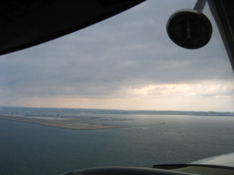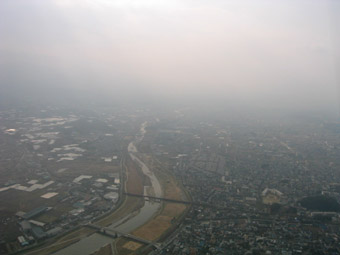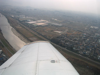 大和川を横断、もう少し飛んだら左旋回で