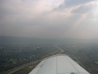 3時の方向に全日空のボーイング767が降りて