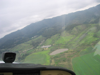 翼の下あたりに滑走路が見えるのがわかりますか?