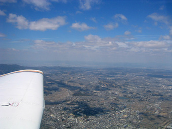 右旋回、生駒山沿いを南方向に向いましょう。 |
