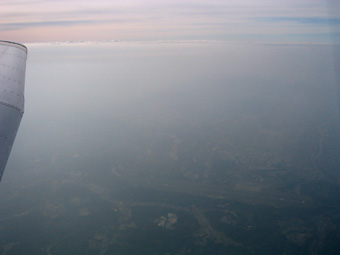 真下には滑走路が微かに見えています。