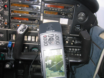 副操縦士側には携帯できる航空用GPSを
