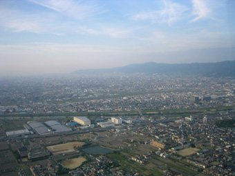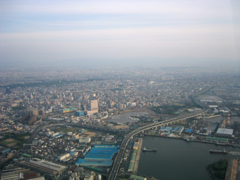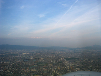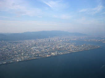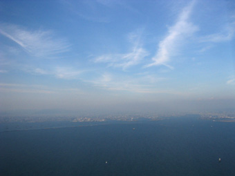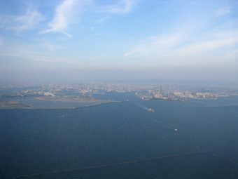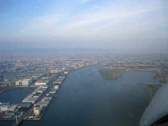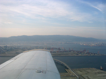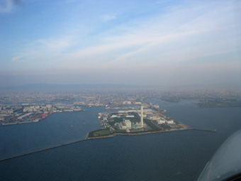 淀川や大和川の河口が遠くに見えてきましたね。