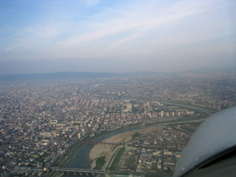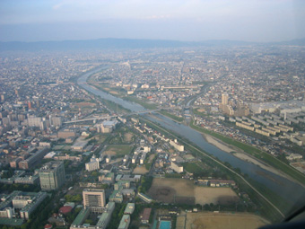 大和川が右に曲がっている所が八尾空港から